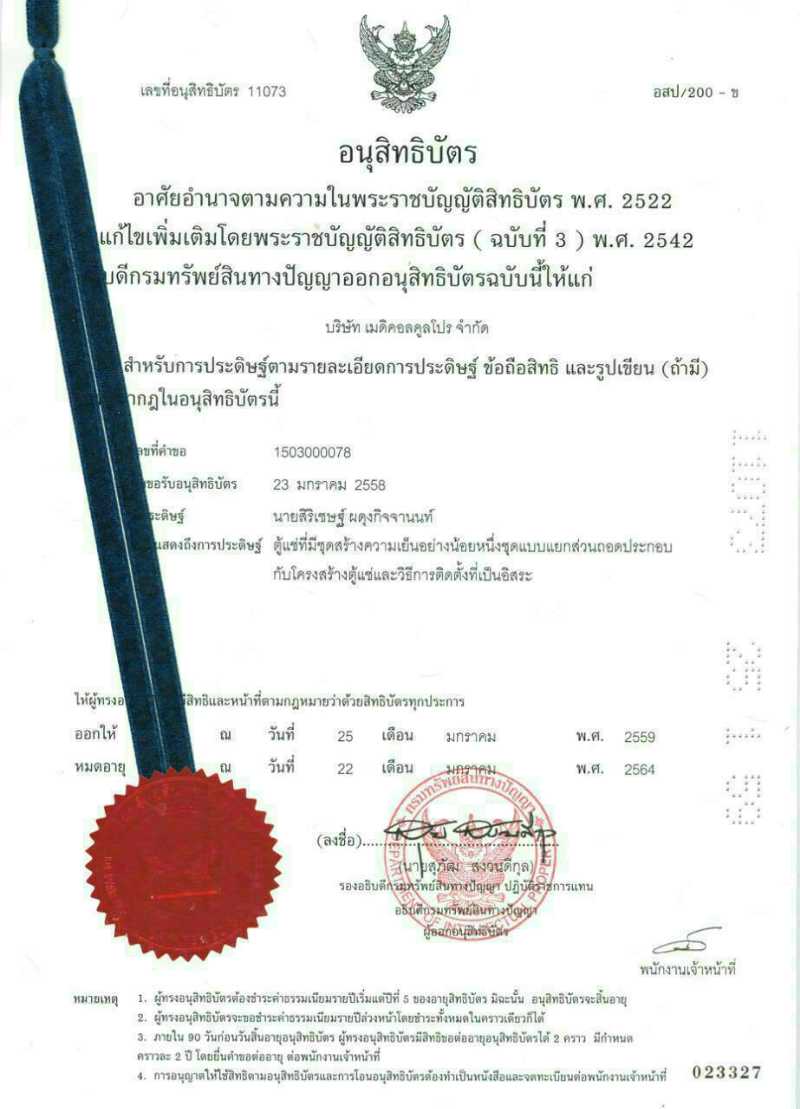 บริษัทเมดิคอลคูลโปร จำกัด ก่อตั้งขึ้นโดยนาย สิริเชษฐ์ ผดุงกิจจานนท์ อดีตข้าราชการเจ้าพนักงานเภสัชกรรมชำนาญงาน ได้นำประสบการณ์ตรงที่พบในการปฎิบัติงานมาคิดค้นระบบตู้แช่ยาที่เป็นนวัตกรรมใหม่ ซึ่งสามารถป้องกันและแก้ไขปัญหาต่างๆได้จริง จึงได้รับรางวัลผลิตภัณฑ์ดีเด่นปี 2559,