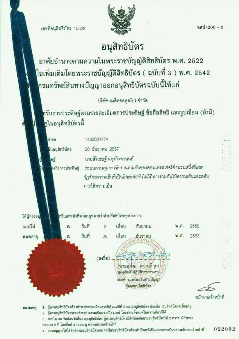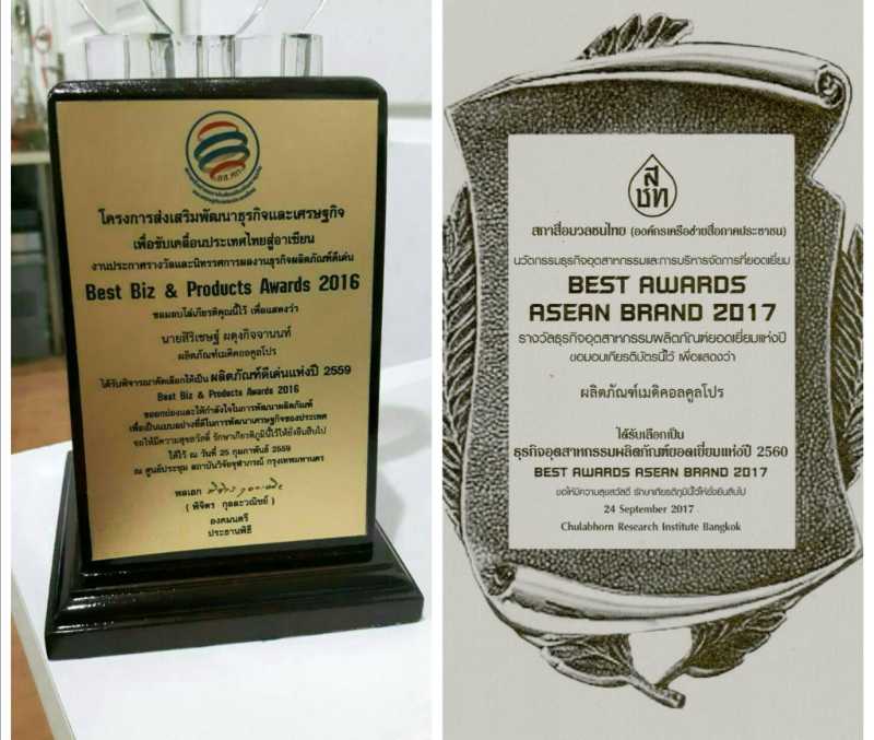 Best Awards Asean 2560.และได้รับความคุ้มครองภายใต้อนุสิทธิบัตรจากกรมทรัพย์สินทางปัญญา