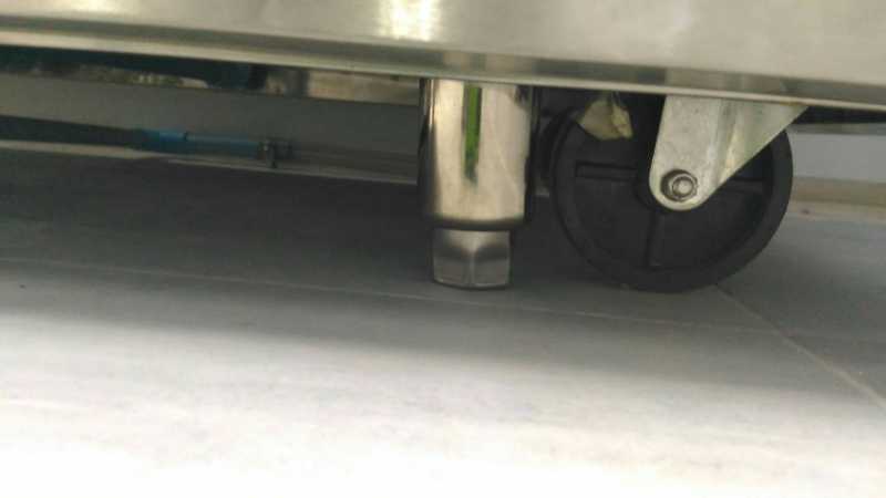 ใต้ตู้ที่ล้อ จะมีขาสแตนเลสสำหรับหมุนปรับค้ำยันตู้เพื่อไม่ให้ตู้เคลื่อนที่เวลาเปิดใช้งาน